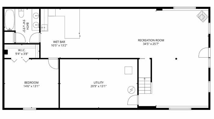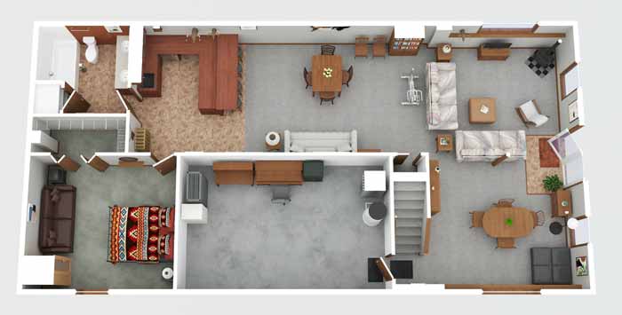 Lower Level Floor Plan with Approximate Room Dimensions & 3D Doll House View
