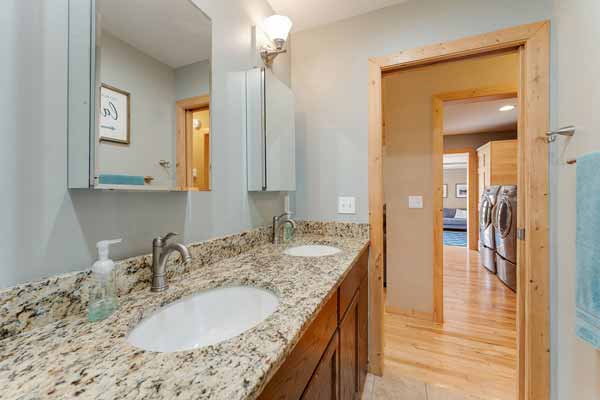 A full bath with dual vanity, jetted tub & shower!