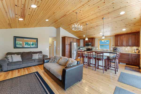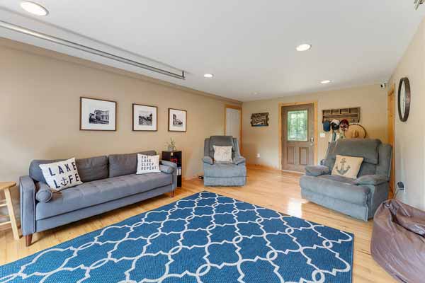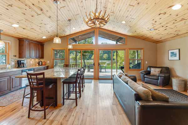 An inviting living area in the great room! SUPER lake views! Patio access!