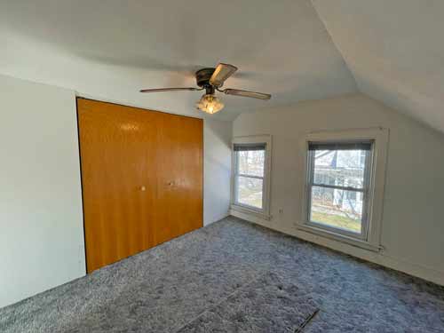 Large upper level bedroom with ample closet space & a ceiling fan