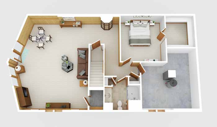 Lower Level Floor Plan (dimensions approximate) and a Doll House View!