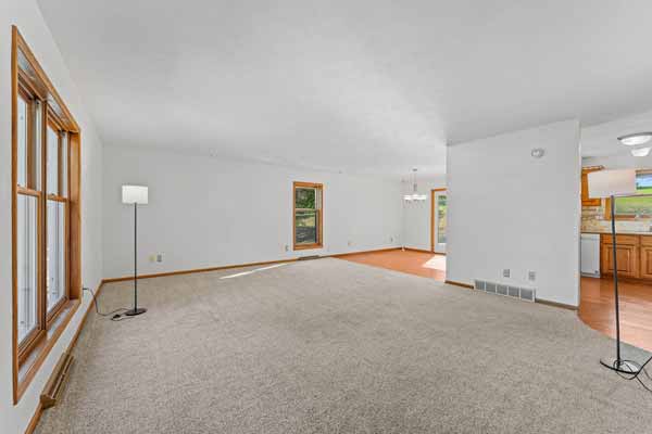 Generous living room flows into the dinette & kitchen. Plenty of options for