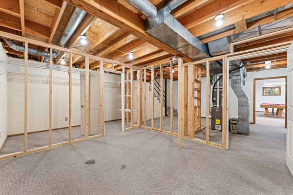 Two areas in the lower level are roughed/framed & ready for you to create