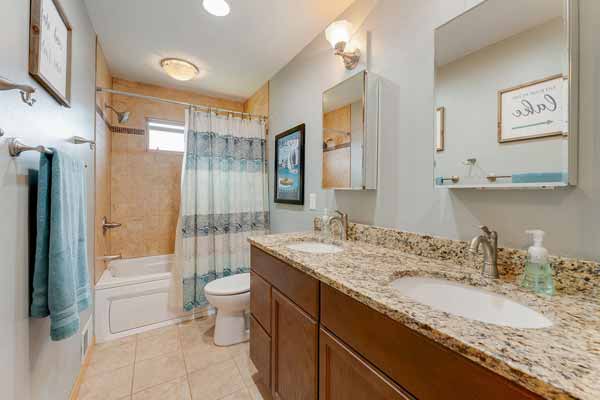 A full bath with dual vanity, jetted tub & shower!