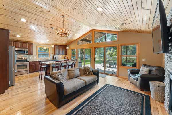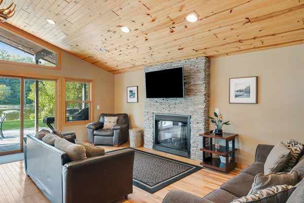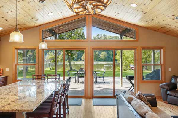 An inviting living area in the great room! SUPER lake views! Patio access!