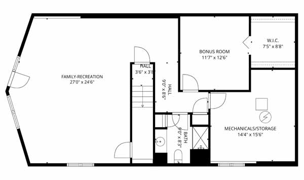 Lower Level Floor Plan (dimensions approximate) and a Doll House View!