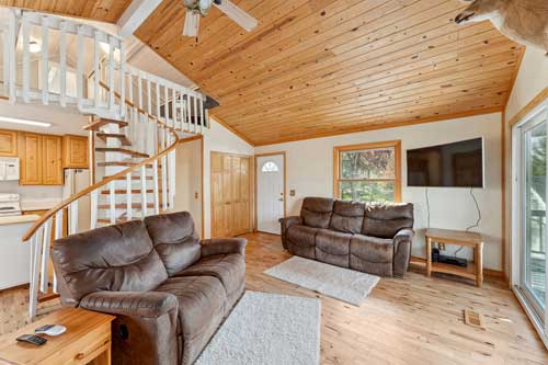 A large loft and additional bedroom are found upstairs